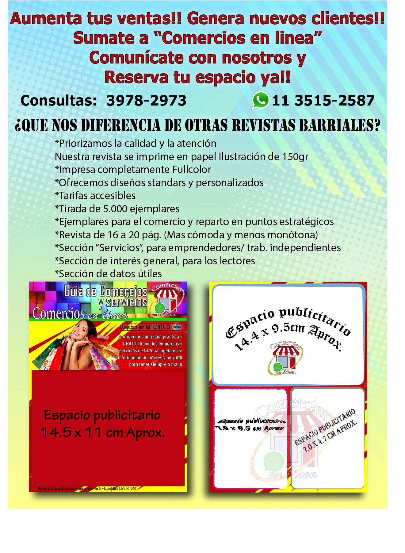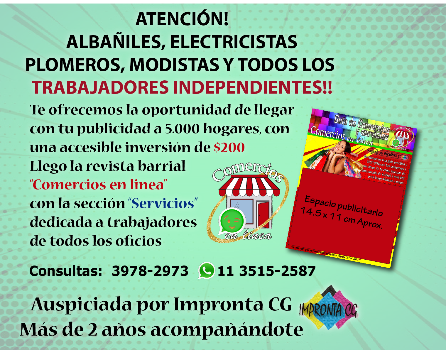 En la revista barrial "Comercios en linea" tenemos para vos, la sección "Servicios" dedicada a trabajadores de todos los oficios